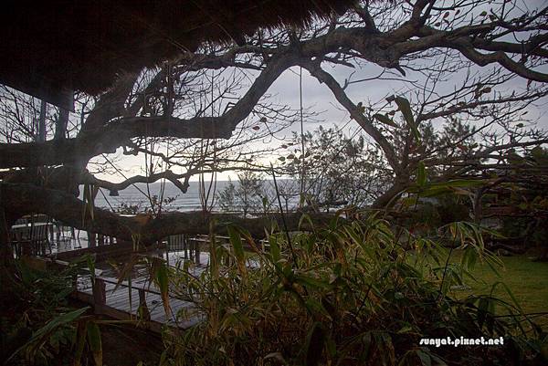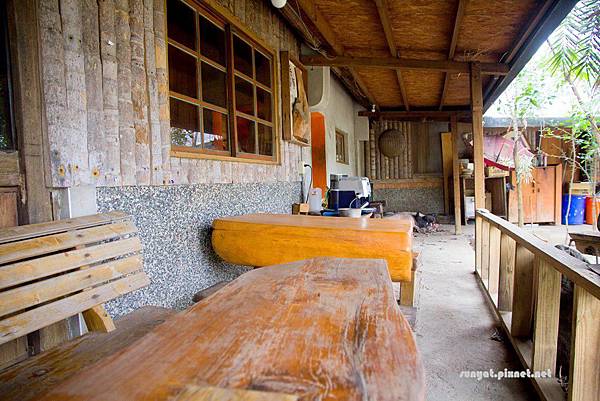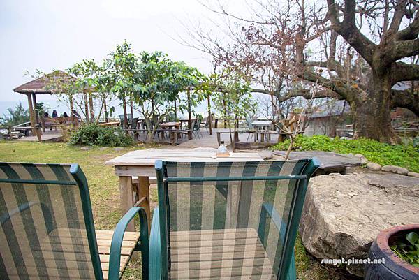 除了自己房間外,這兒最棒的就是有許多「發呆亭」,皆是可以望向太平洋的桌椅。無論是屋簷「與豬共舞」,