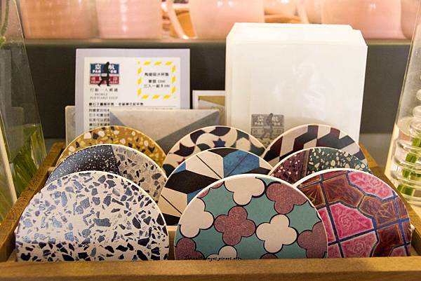 遙寄遠方友人,希望有一天他能夠也來台南遊玩。另外還有杯墊等商品,等等在品飲茶或咖啡,