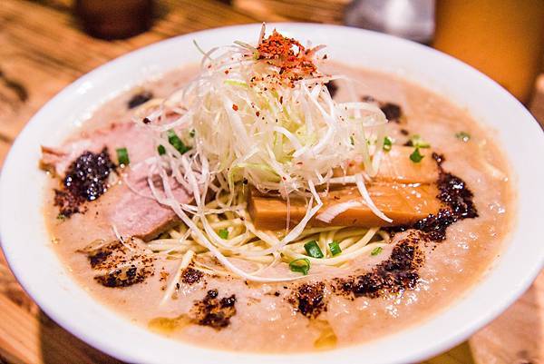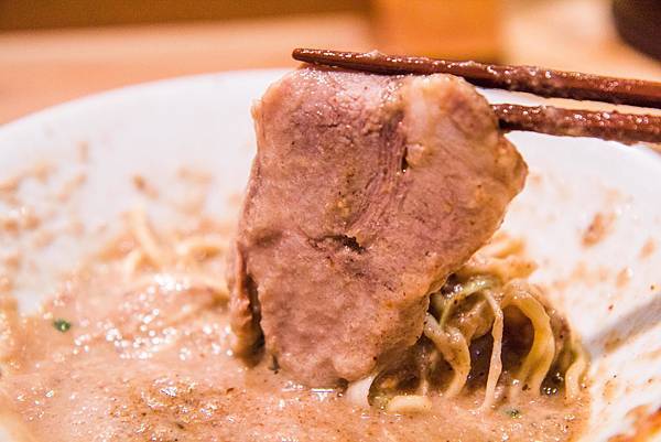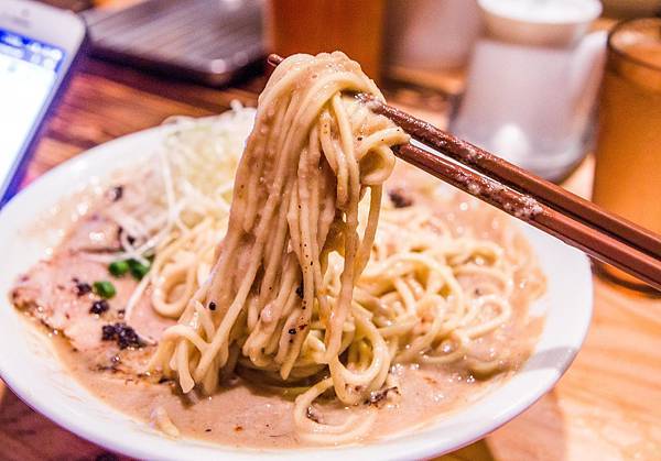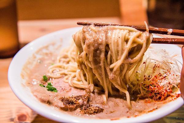 湯很濃稠,像是沾麵一樣,把所有的麵條都藏在其中保持溫度,卻又帶點硬度,在一乘寺這一級戰區當中,