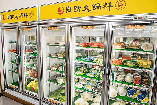 自助火鍋料區 ─ 也都使用保鮮膜包好,看好之後打開冰櫃取餐,份量價位都很清楚,隨吃隨取不浪費。