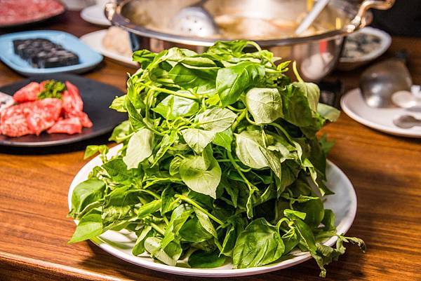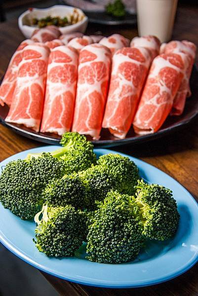 吃火鍋也要來個蔬菜盤,首先我拿了個花椰菜,店員推薦來老汕頭要點「枸杞菜」才有特色,