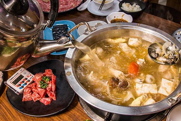 而且還附上計時器,最優的食用時間在三分鐘整,將牛角肉放下鍋,再度夾起來的同時,