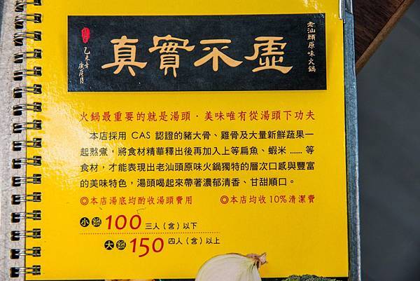 菜單 ─ 先從湯頭開始點,今天是家庭聚餐很多人,所以湯頭點大份的150元,此後可以一直加湯,