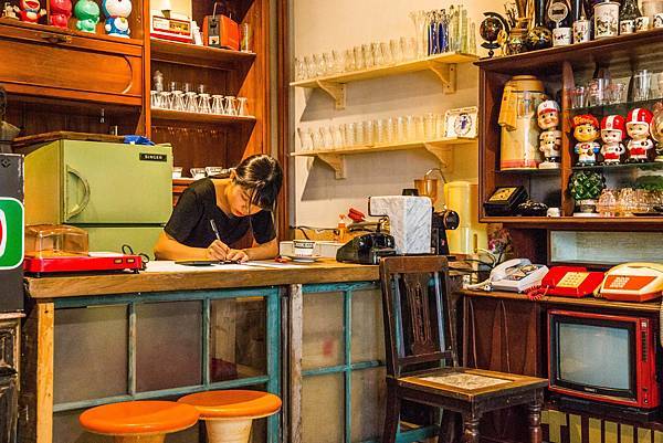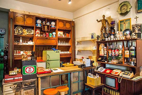把很多在家裏頭很厲害的舊件布置在新店當中,而且完全不會覺得很雜亂,變成身在博物館的特色店家。