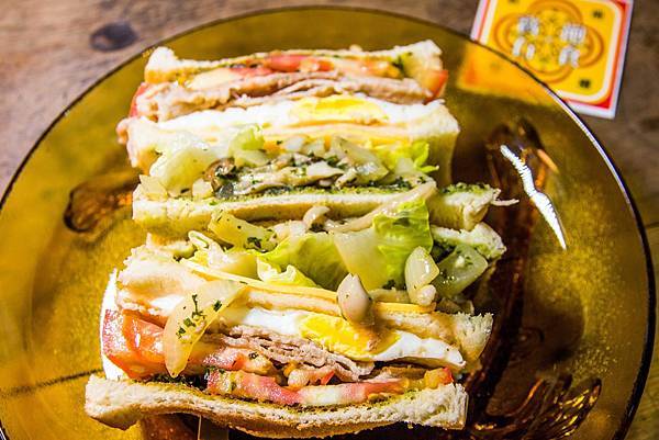 烤的香香的麵包,生菜蕃茄、雞肉、蛋、青醬菇菇,寶石超級推她們家的青醬,充滿蘿勒的香氣,