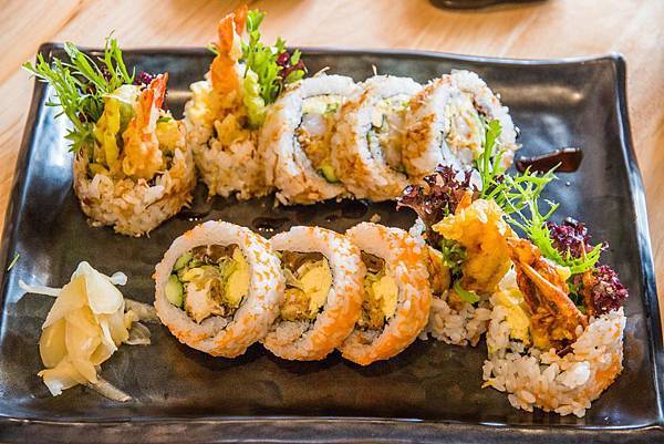 炸蝦是兩隻大蝦做成壽司捲,軟殼蟹則是一隻。