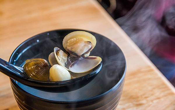 一碗丼飯只有搭配一碗免費湯品,另外我們還加點蜆湯蒜香四溢,慢慢搭配下頭的料理。