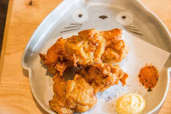 外層的炸皮金黃酥脆帶點厚度又不會搶戲,搭配上美乃滋或七味粉都很適合。