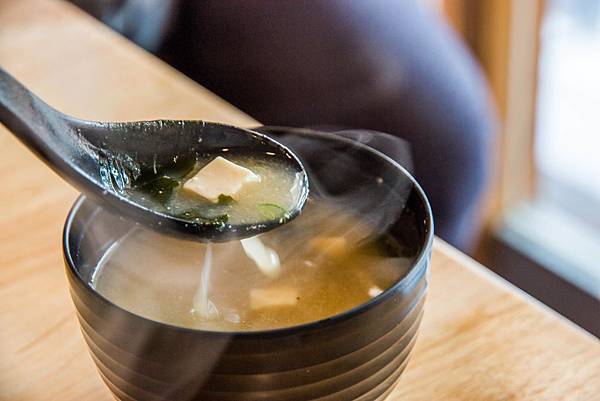 附上一碗熱熱的味噌湯,走不會過鹹的口味。送上桌超級燙,到吃完丼飯都還熱熱的。
