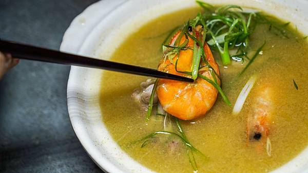 有鮮蝦、蛤蜊與土雞腿肉,與溫暖的味噌,真是太豐富幸福。