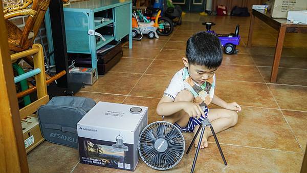 這台的型號為「SANSUI山水-充電式露營風扇(SHF-W55)」,