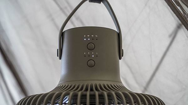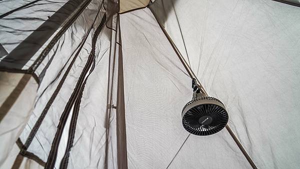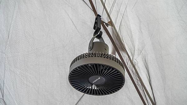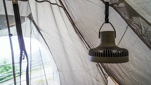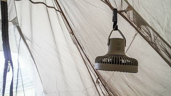 因為輕盈,掛好不會一直掉下來。躺在睡袋中,只要遙控便可輕易掌控風力大小。