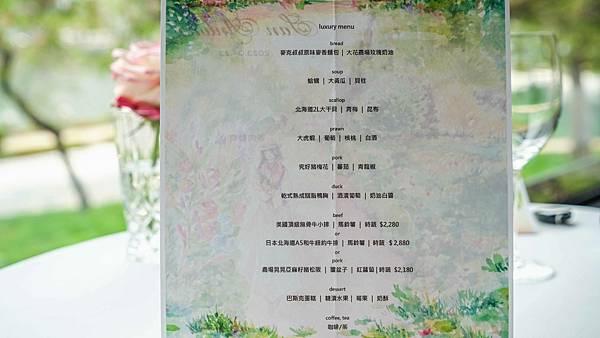 現在只提供三種主餐菜色(+10%):美國頂級牛小排 2280元、