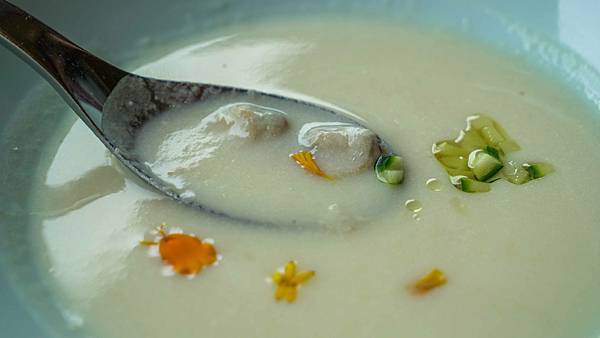 黃瓜海鮮濃湯,最近的黃瓜又大又甜美,蛤蜊海鮮濃湯加入點脆口瓜類蔬菜,