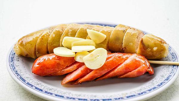 香腸屬於比較不油膩的那種,蒜片非常豪邁撒上,