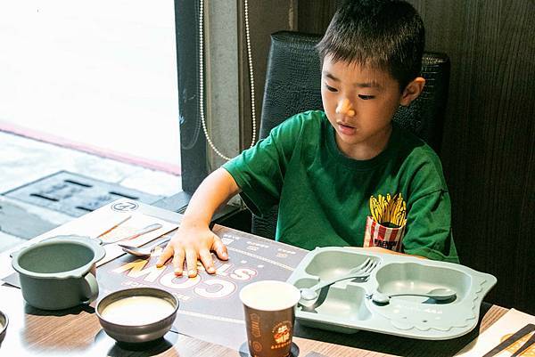 小孩也有專屬的兒童餐具。那邊店員上菜都會留意孩子的位置小心處理。