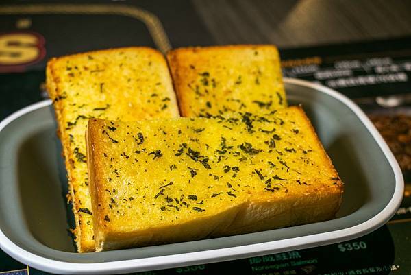 點一份餐就會附上一塊,外皮酥脆內餡鬆軟,烤香酥脆的一塊香蒜麵包,