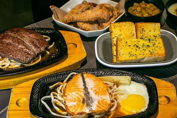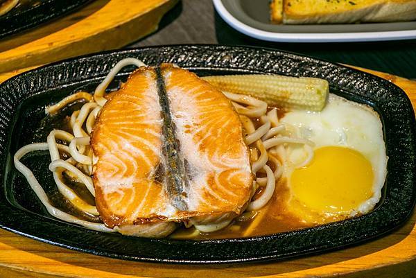 不想吃牛排也有鮭魚可選,因為高溫鐵板邊邊恰恰焦焦,