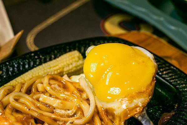 這吃到飽的鐵板麵真的好Q彈,醬料帶點蘑菇醬味道,半熟蛋攪拌下去,有夠誇張好吃!