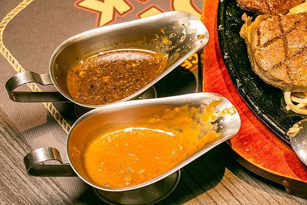 有兩種醬料可請店員送上桌,不過也是一樣適度添加就好,靠炙燒牛排原肉最好吃!