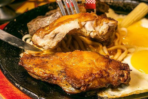 鐵板剛送上桌很燙,剛好可以讓邊角都有點焦脆,