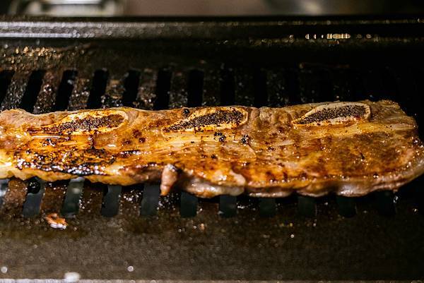 帶骨牛小排超讚的,烤到全熟的時候剪開,其實就可以判斷是否肉熟,然後就來食用啦!