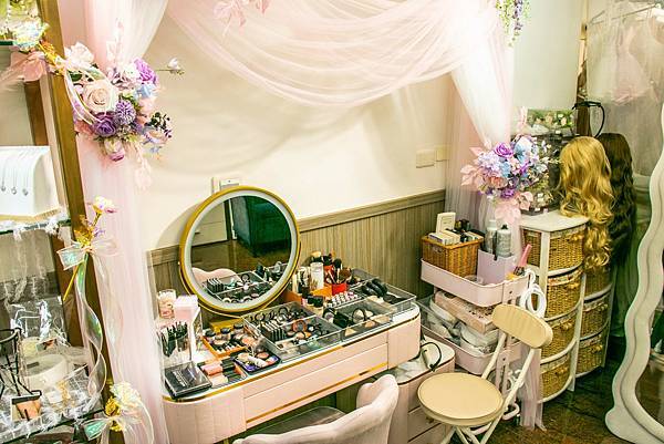 專業梳化空間,職業新秘就是愛買,也可以跟老闆交換化妝心得。