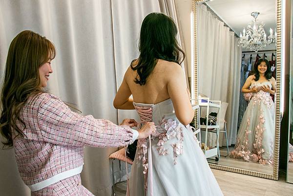 選好禮服就會有專業人士協助更換,有乾淨un bra可以借,也可以使用自己的。