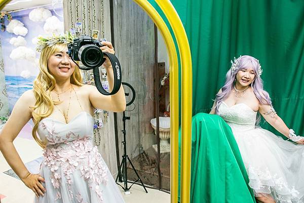 因為最後會送給顧客合成照,所以也可以由此來選禮服。