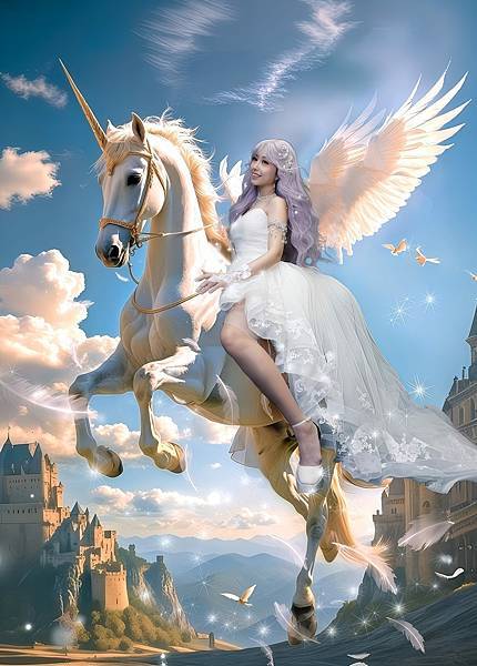 合成照製作中好有趣,老闆說這個飛馬是他創品牌的靈感來源,